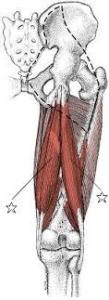 大腿直筋(だいたいちょくきん)は、骨盤から膝下まで付いておりボールを蹴る動作の時に使われる筋肉です。股関節を曲げたりする動作にも使われるため、股関節前面に痛みがある方はこの筋肉を痛めている場合があります。