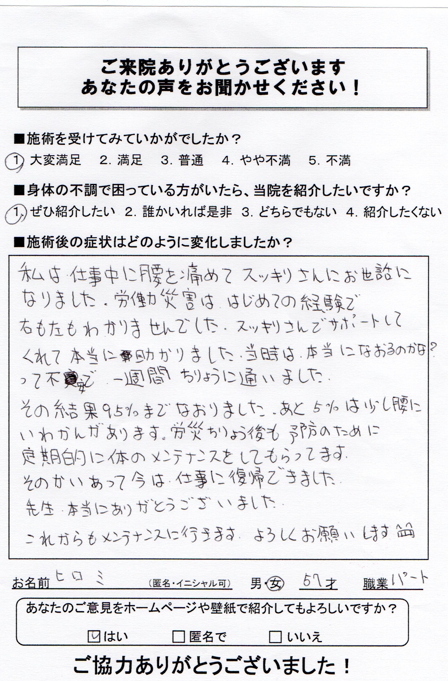 私は仕事中に腰を痛めてスッキリさんにお世話になりました。
