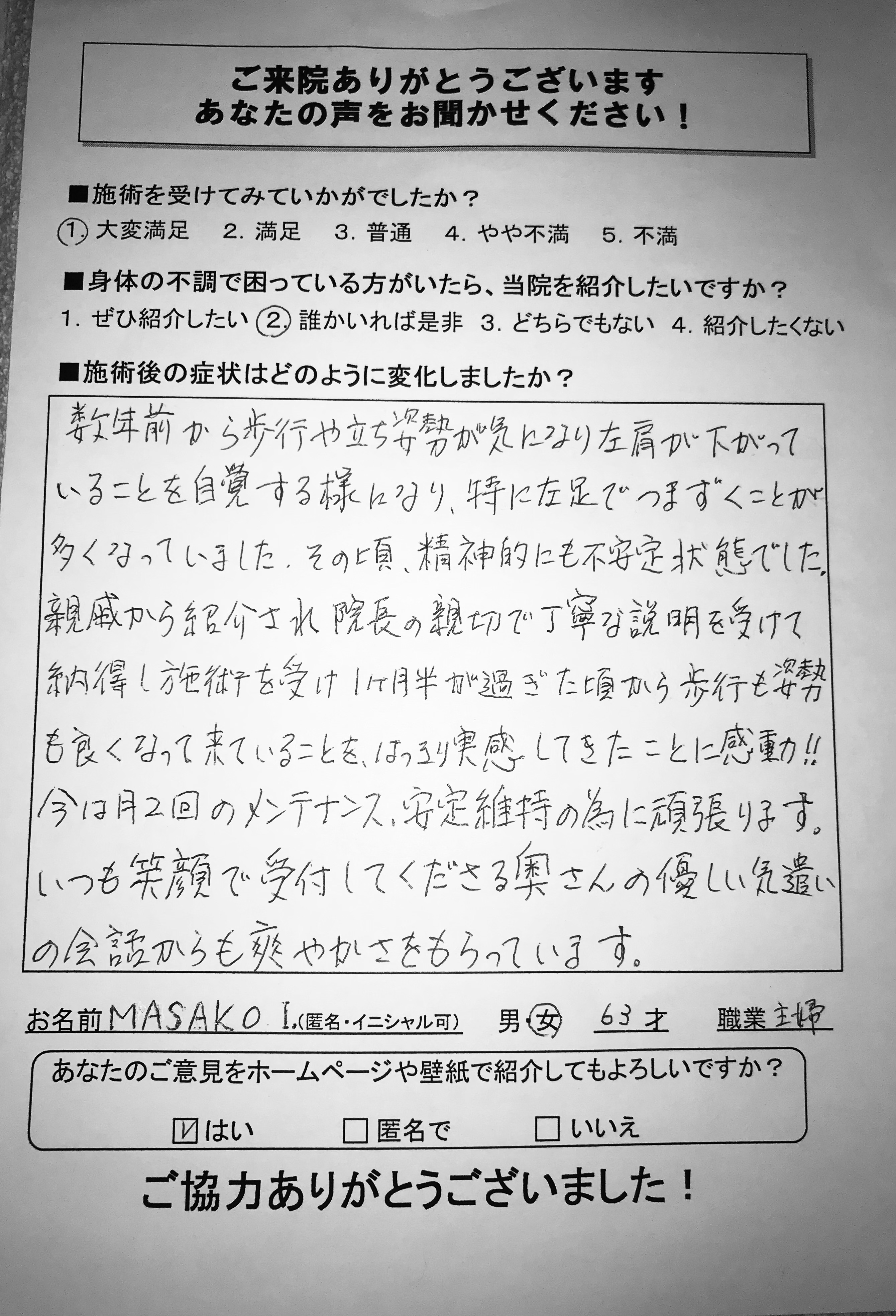 MASAKO. Iさん 63歳 女性 主婦
